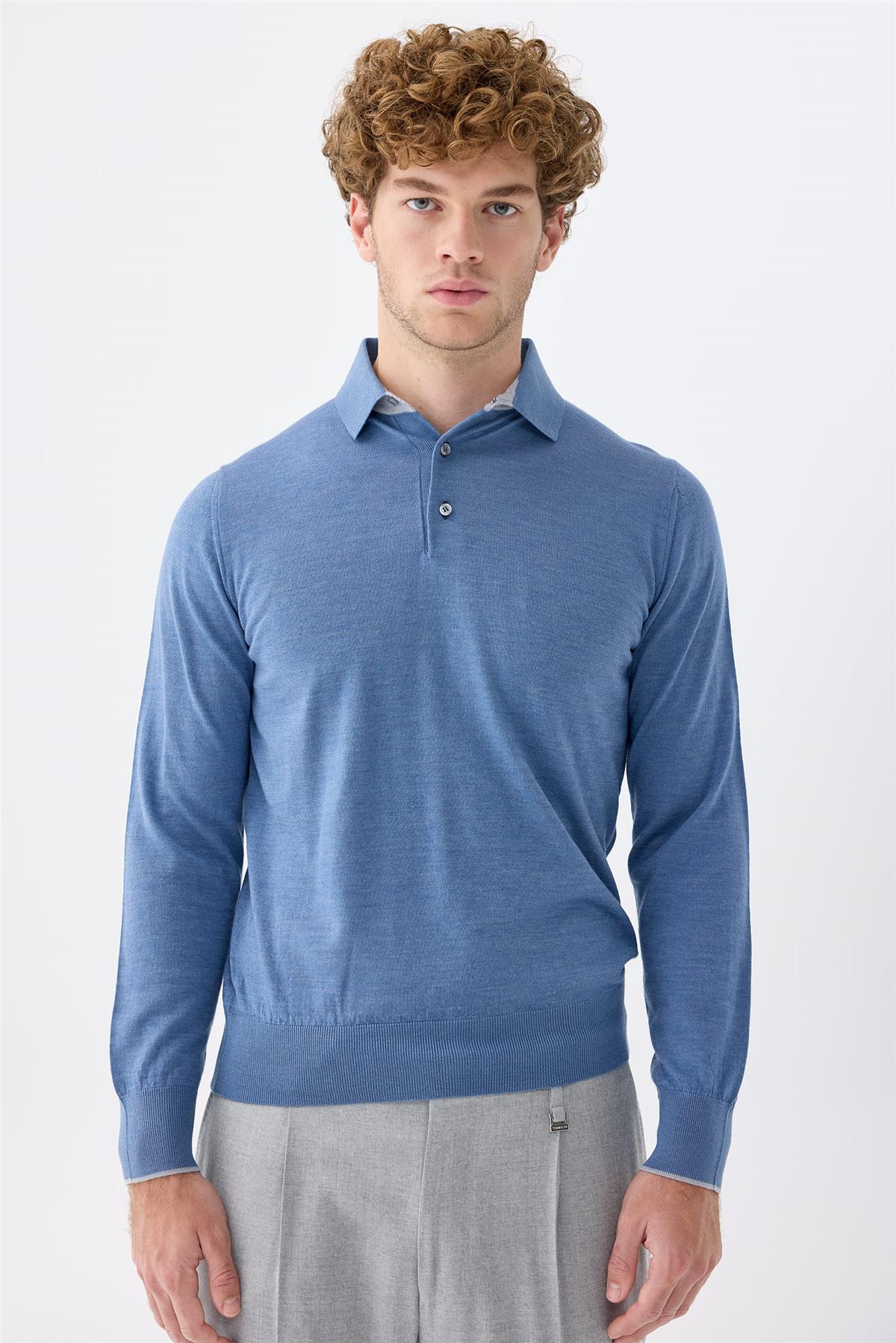 Mavi Polo Yaka Yün İpek Kaşmir Triko (18382-33396)